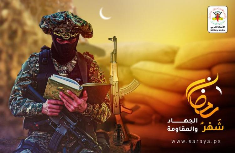 تقدمت سرايا القدس الجناح العسكري لحركة الجهاد الإسلامي في فلسطين، بأحر التهاني والتبريكات للأمتين العربية والإسلامية عامة، وإلى الشعب الفلسطيني المرابط ومجاهديه وأسراه وجرحاه وعوائل الشهداء خاصة، بمناسبة حلول شهر الجهاد والانتصارات، شهر رمضان المبارك.