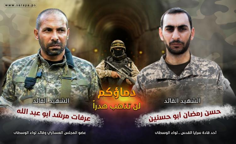 ليس غريباً على حركة الجهاد الإسلامي في فلسطين وجناحها العسكري سرايا القدس أن تقدم قادتها قبل الجند شهداء على طريق الحرية والنصر, فمنذ تأسيس الحركة مطلع الثمانينات اتخذت الحركة شعار القائد القدوة "أينما يكن الجندي لابد أن يجد القائد بجانبه" أسوةَ بالنبي محمد صلى الله عليه وسلم الذي كان دوماً في مقدمة الجيش.