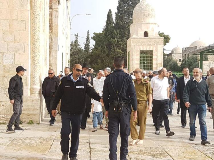 اقتحم مستوطنون، اليوم الخميس، باحات المسجد الأقصى المبارك، من جهة باب المغاربة.