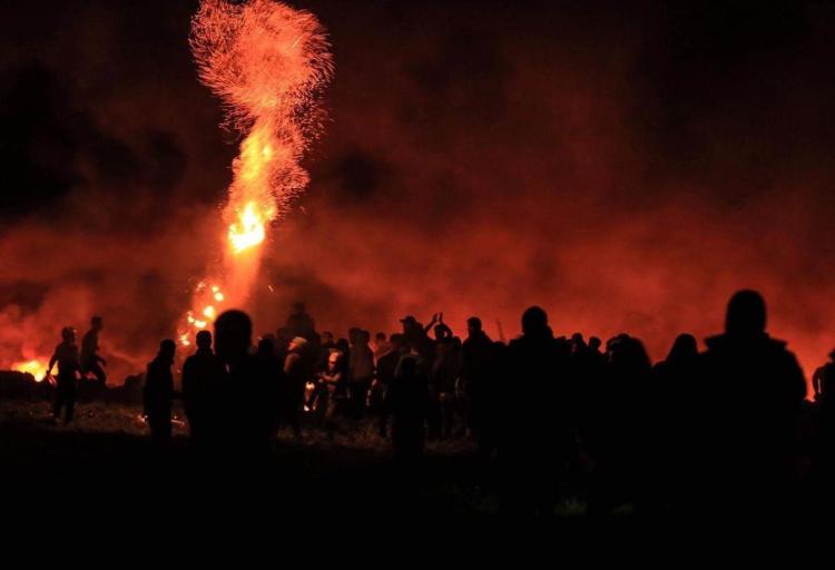 ونظم مئات الشبان الغاضين فعاليات الإرباك الليلي شرق جباليا شمال قطاع غزة، ضمن فعالياتها اليوم على السياج الأمني شرق القطاع.