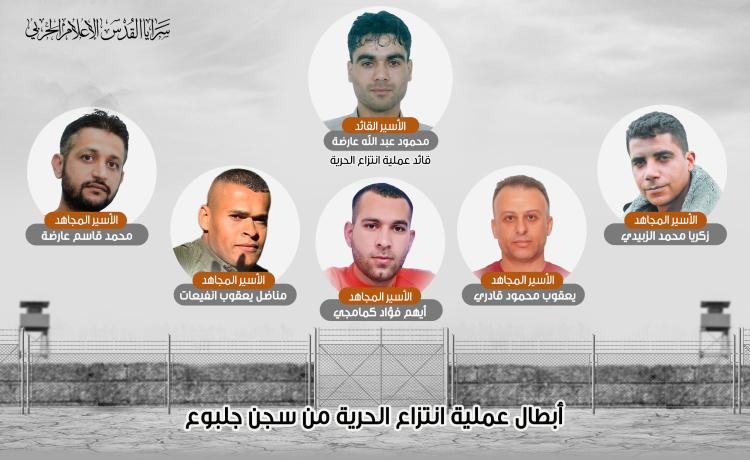 يذكر أن الأسرى الستة المذكورين، قد نجحوا يوم 6 سبتمبر 2021، بقيادة الأسير محمود عارضة بانتزاع حريتهم عبر نفق حفروه من سجن جلبوع أشد سجون العدو تحصيناً وحراسة، وكانت عملية متقنة ودقيقة، وجهت ضربة أمنية موجعة للعدو الصهيوني وإدارة سجونه، وقد اعترف العدو عبر وسائله الإعلامية بخيبته أمام هذا الحدث الذي سطره الأسرى بعزيمتهم الصلبة.
