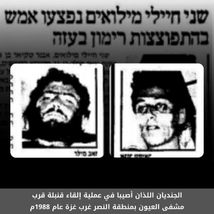 وأوردت صحيفة معاريف الصهيونية بتاريخ 12/10/1988م تفاصيل إصابة جنديين صهيونيين في انفجار قنبلة ألقيت عليهم في غزة، موضحةً أن "جنديان احتياط أصيبا جراء انفجار قنبلة في غزة، ونقلا إلى مستشفى برزلاي بعسقلان للعلاج".