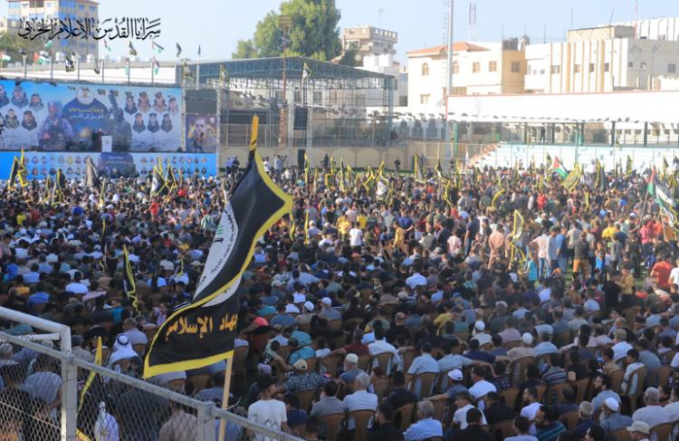 شارك عشرات الآلاف من الجماهير الفلسطينية والعربية، مساء الخميس، في مهرجان كبير نظمته حركة الجهاد الإسلامي في خمس ساحات (غزة، ورفح، وجنين، ودمشق، وبيروت) بوقت متزامن، بعنوان "وحدة الساحات.. الطريق إلى القدس"؛ لتأبين شهداء معركة "وحدة الساحات" التي خاضتها سرايا القدس ضد الاحتلال الصهيوني.