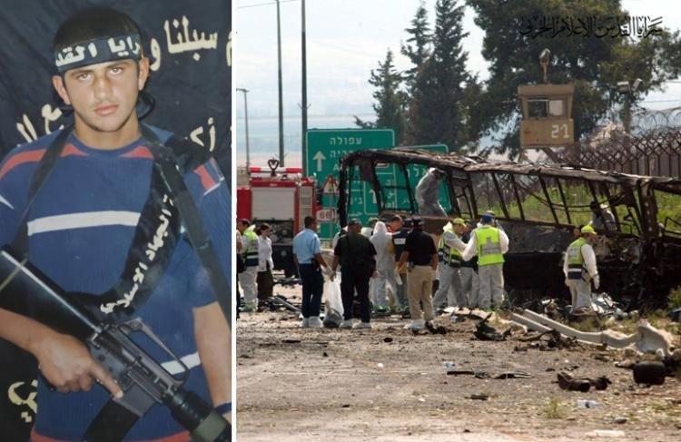 ورد هذا الخبر في كتاب "إرهاب الانتحاريين خلال سنوات المواجهة الإسرائيلية الفلسطينية من سبتمبر 2000م إلى ديسمبر 2005م" صفحة "154-155-156"، الصادر عن مركز المعلومات للاستخبارات وللإرهاب: "في صفحة 154 ورد: "حمزة عارف السمودي ابن 18عامًا انتقل بسيارة مفخخة وجاور الجانب الأخير من حافلة إيجد خط 830 المتجهة لطبريا وفجّر السيارة المفخخة التي يقودها قبل مفترق مجدو بحوالي 500 مترًا وكان نتيجة العملية 17 قتيلًا معظمهم من الجنود و44 جريحًا وتبين أن المخرب أرسل على يد البنية العملياتية (سرايا القدس) لحركة الجهاد الإسلامي في فلسطين بمنطقة جنين بقيادة إياد صوالحة وسعيد صوباسي والذي اعتقل فيما بعد واعترف في التحقيق لدى جهاز الأمن العام أنه جهز العبوة التي كانت بالسيارة وجهز كذلك المخرب الانتحاري للعملية، تم تركيب لوحات ترخيص صفراء "إسرائيلية" على السيارة وأدخل فيها برميلين من المواد المتفجرة بوزن 55 كجم كل برميل".