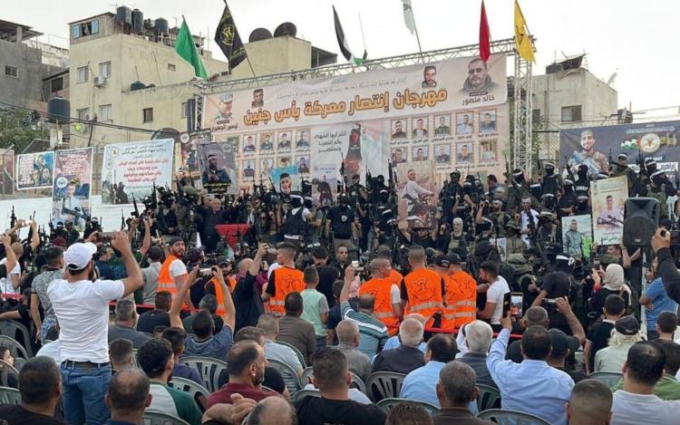 نظمت حركة الجهاد الإسلامي في فلسطين – الضفة المحتلة، وذراعها العسكري سرايا القدس - كتيبة جنين، والقوى الوطنية والاسلامية، مهرجاناً لتأبين شهداء معركة بأس جنين، مساء الجمعة على أرض ملعب نادي مخيم جنين بمناسبة مرور 40 يوماً على ارتقائهم.