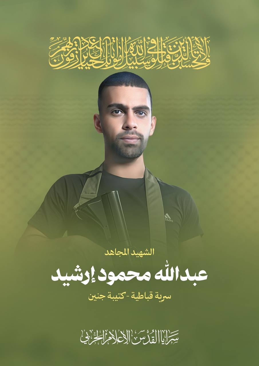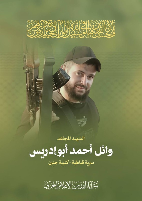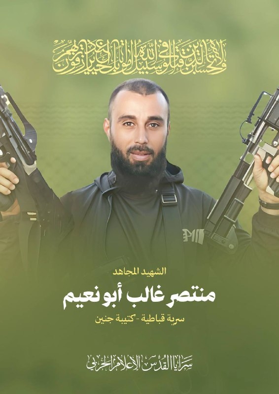زفت "سرايا القدس" الجناح العسكري لحركة الجهاد الإسلامي، ثلة من مقاتليها استشهدوا أثناء اشتباكهم مع قوات العدو في محور الجبل بين قرية صير ومسلية جنوب جنين في الضفة الغربية المحتلة.