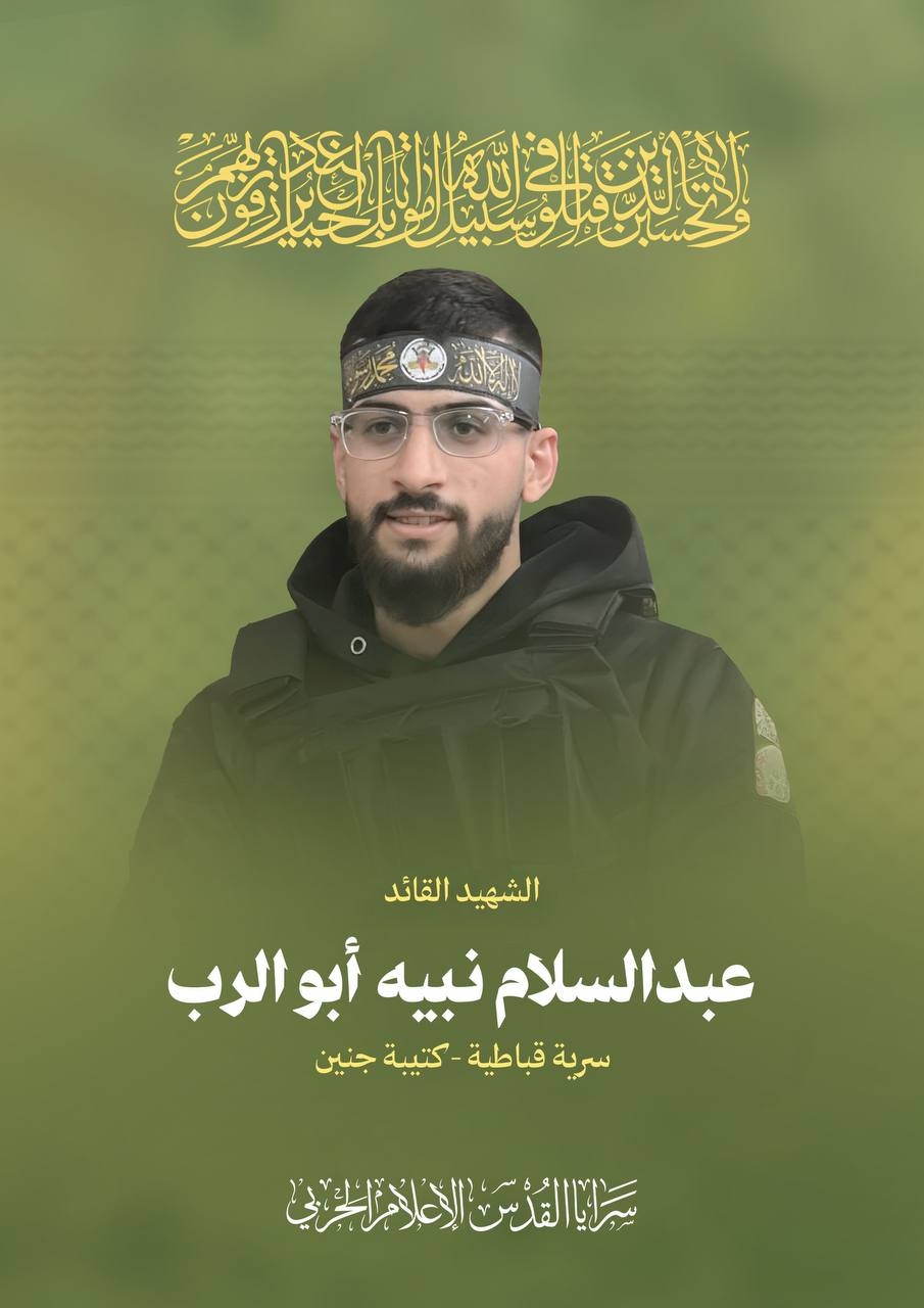وأضافت "السرايا": "بأسمى آيات الفخر والاعتزاز تزُف سرايا القدس القائد عبد السلام نبيه أبو الرب (23 عاماً)، والمجاهد منتصر غالب أبو نعيم (35 عاماً)، والمجاهد عبدالله محمود إرشيد (25 عاماً)، المجاهد وائل أحمد أبو إدريس (31 عاماً).